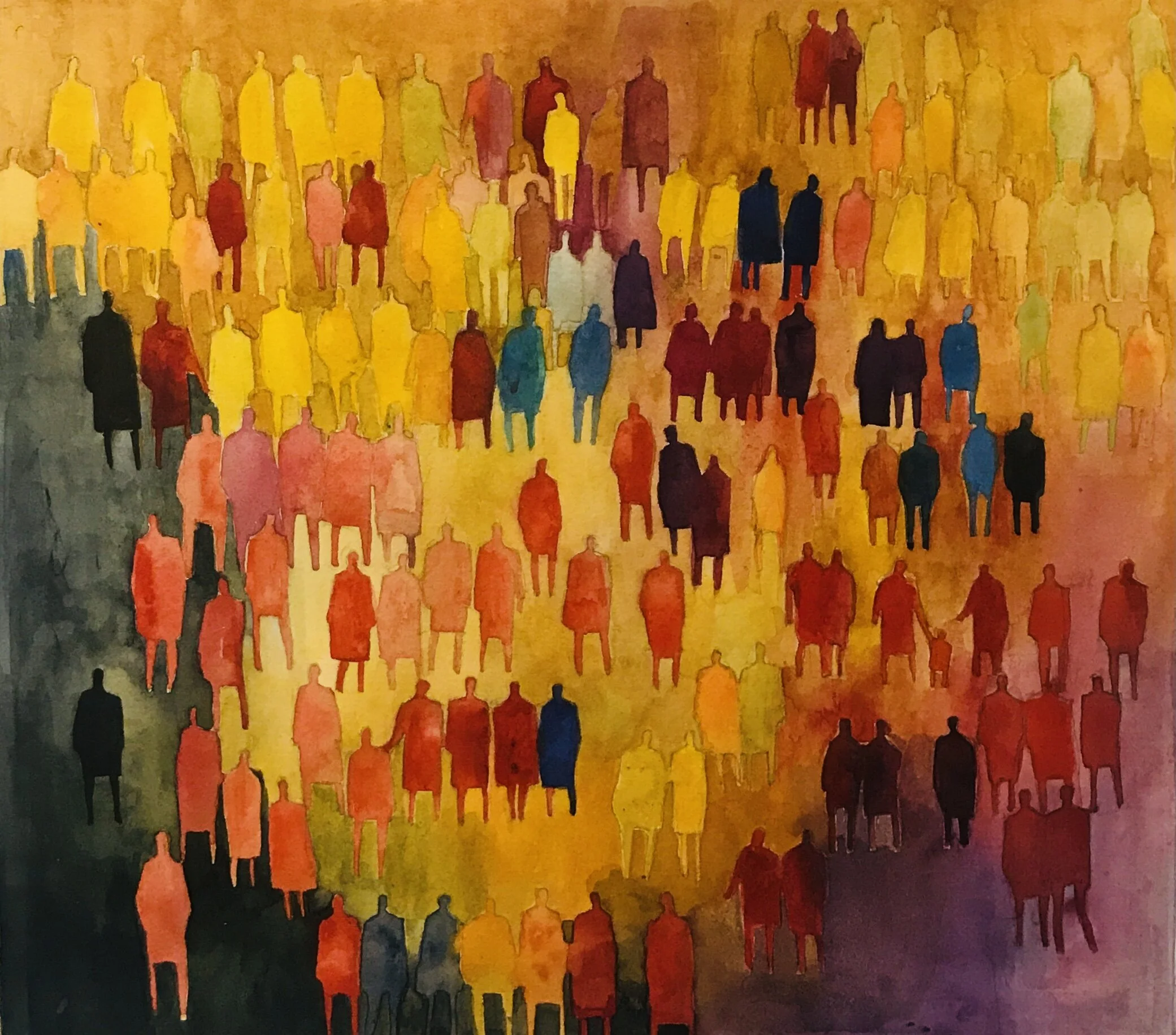 ‘Crowd”- Watercolour, 30 x 25cms, 2021. SOLD