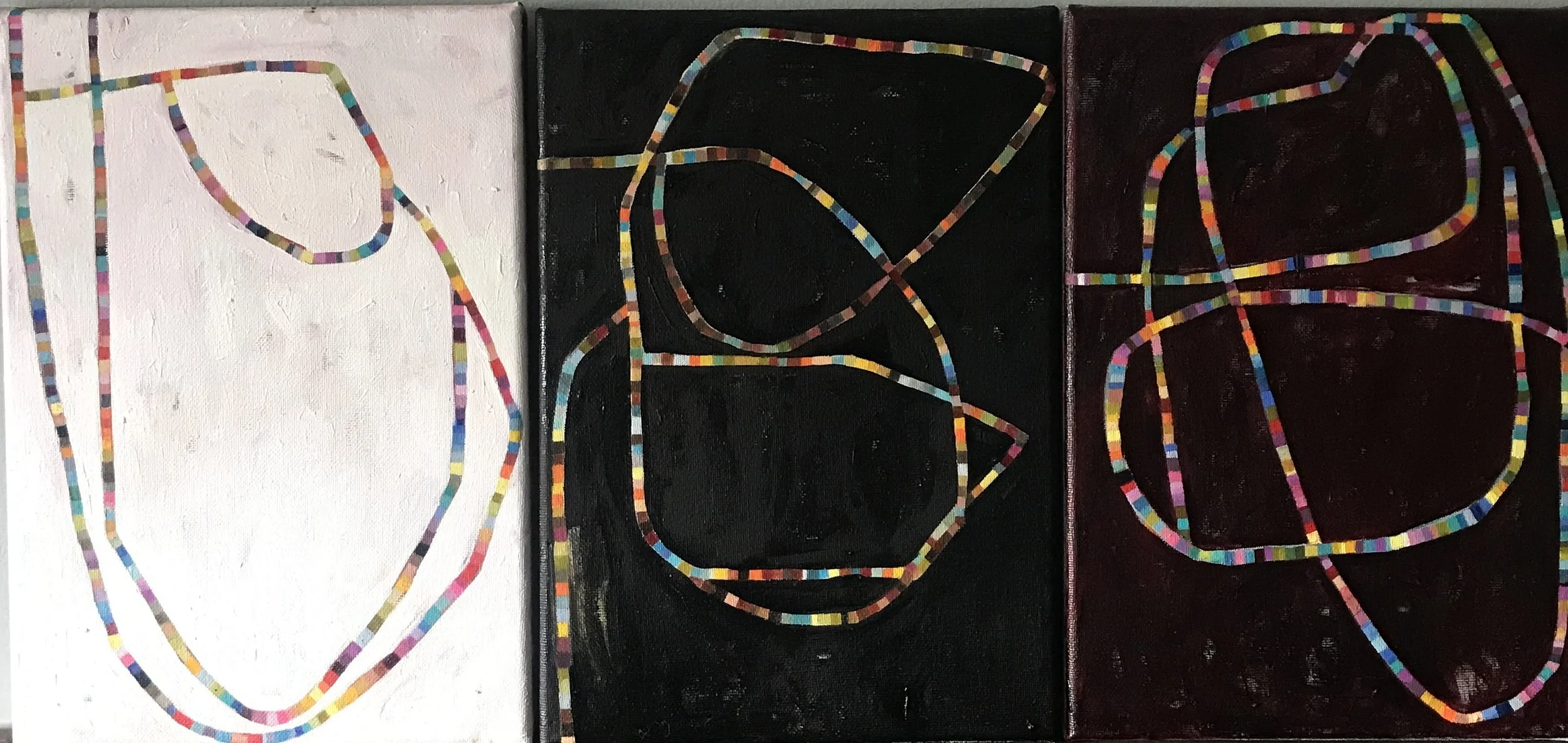‘Routes’-Oil on canvas, 30 x 25cms x3, 2021
